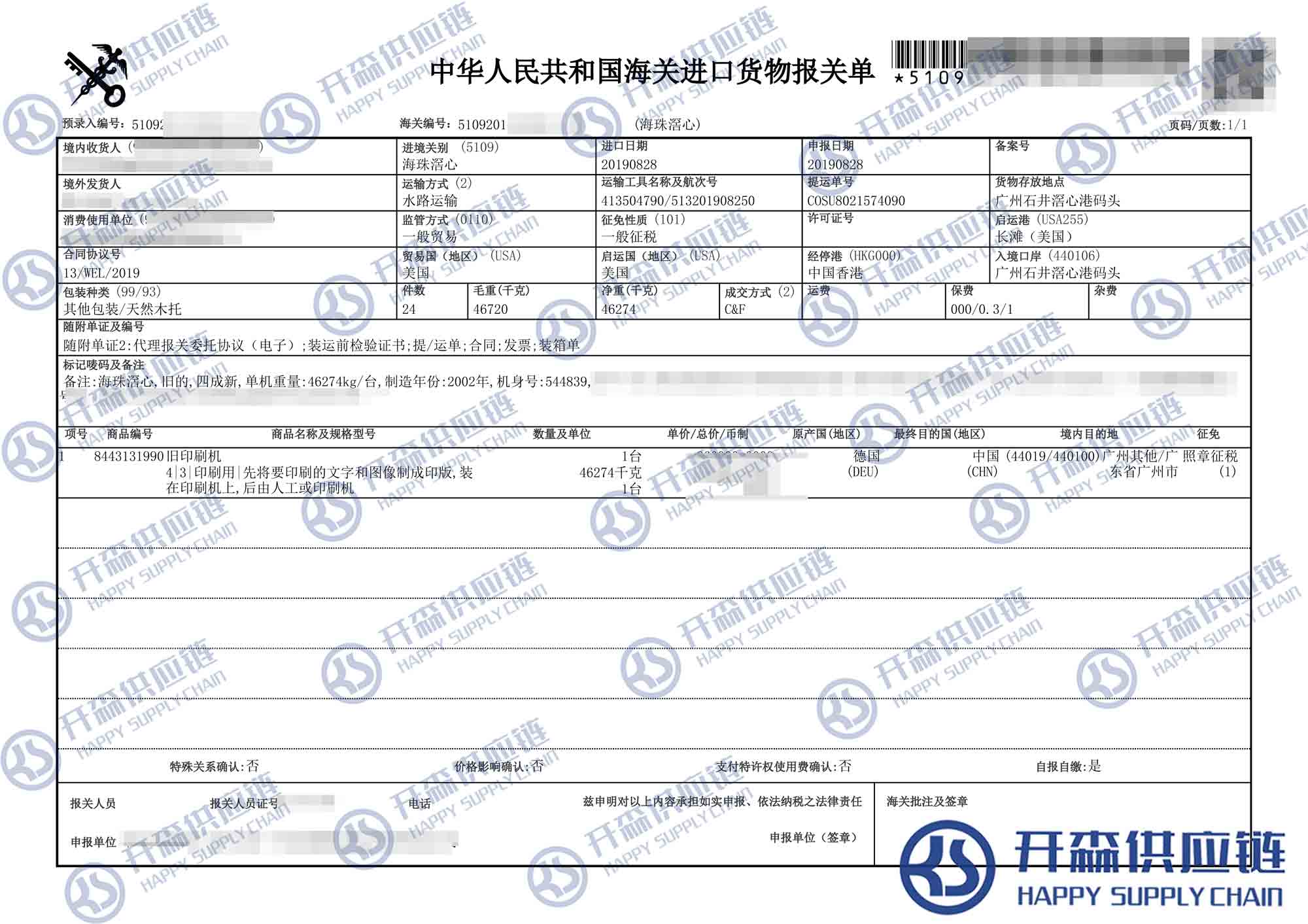 【導讀】您正在閱讀的是關于【進口案例】廣州港二手印刷機進口報關代理服務的內容,本文由開森二手印刷機進口報關代理小編整理編寫;