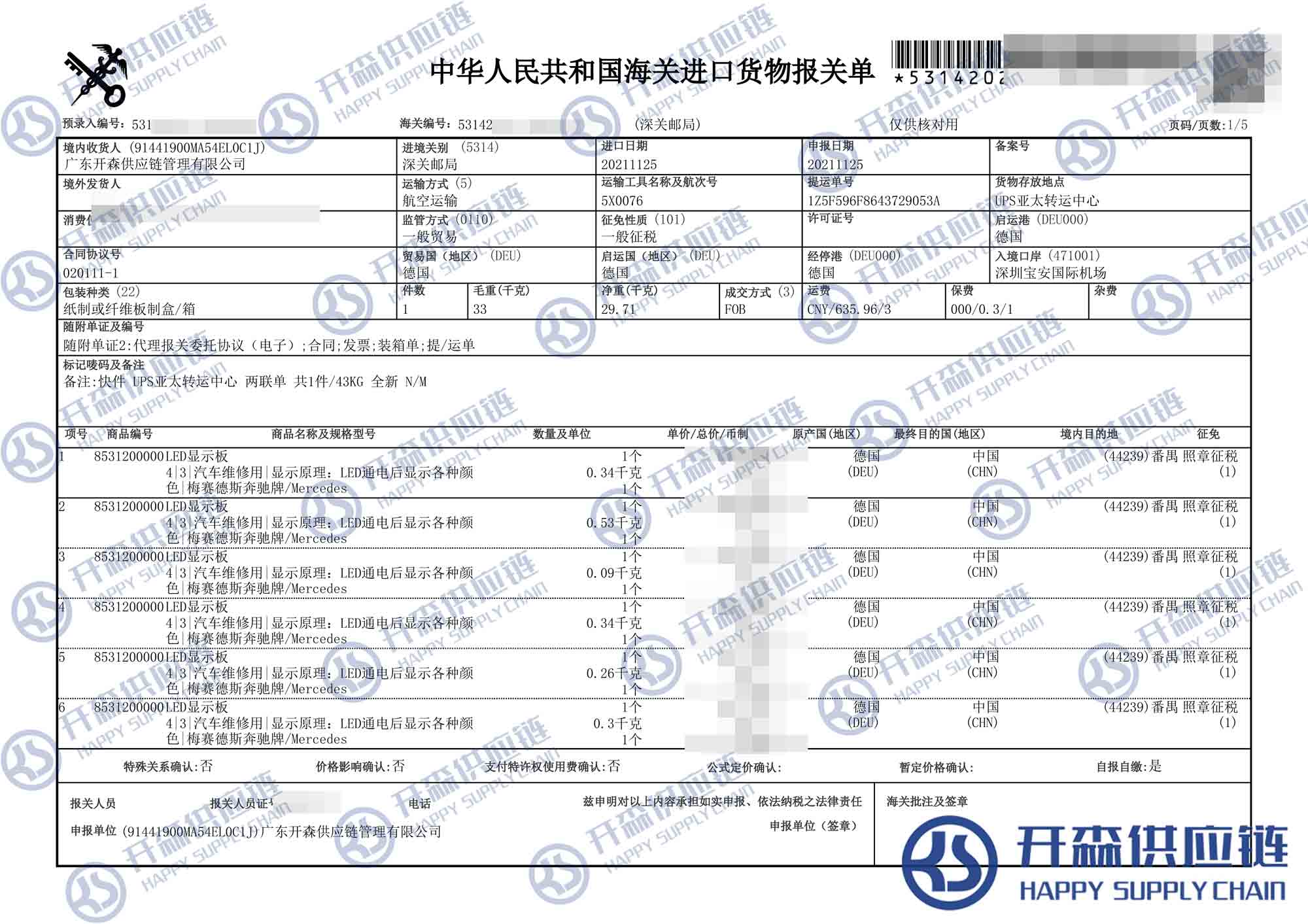上述就是德國奔馳顯示板汽車配件進口報關(guān)代理【進口案例】的全部內(nèi)容,希望能對您有所幫助,如有汽車配件進口報關(guān)上任何疑問及問題可隨時在線聯(lián)系我們或撥打 18002611553,開森供應(yīng)鏈擁有豐富的汽車配件進口報關(guān)操作經(jīng)驗及案例,10余年進口經(jīng)驗為您所用,各類進口疑難都能為您一一解答及協(xié)助快速處理解決!