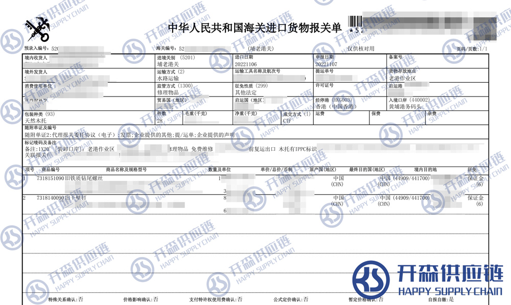 一、舊干壁釘退運(yùn)返修進(jìn)口報關(guān)代理案例詳情